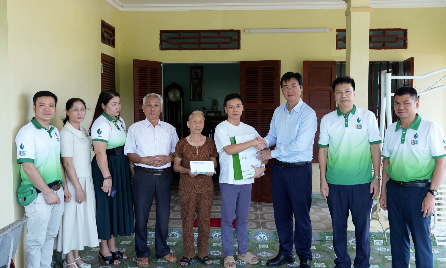 Đại diện NSRP trao hỗ trợ 100 triệu đồng cùng 5 tấn gạo cho các hộ gia đình tại xã Tượng Lĩnh bị thiệt hại do bão số 10.