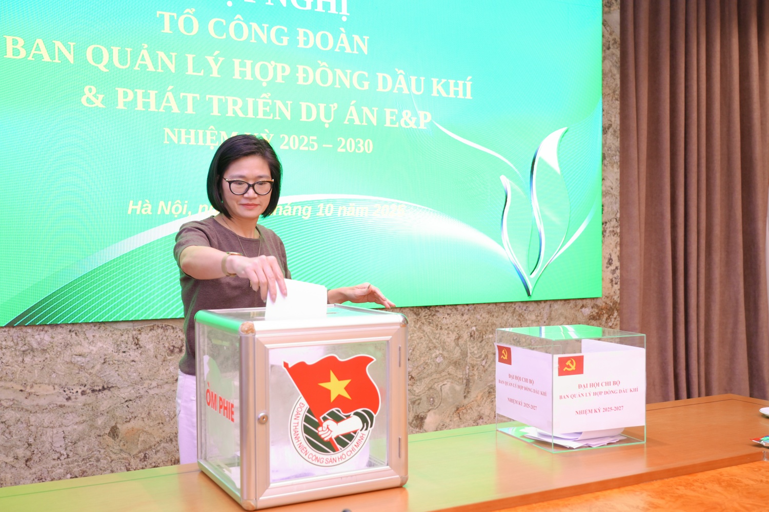 Các đại biểu bỏ phiếu bầu Tổ trưởng, Tổ phó Công đoàn Ban QLHĐ DK và PTDA E&P nhiệm kỳ 2025-2030 và đoàn đại biểu dự Đại hội cấp trên.