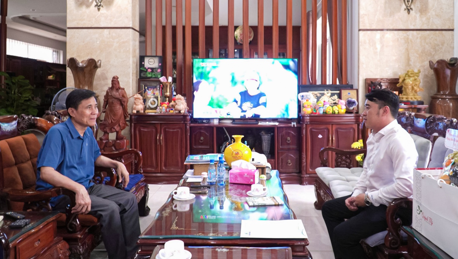 Ông Nguyễn Khắc Bảy - Phó Trưởng Ban Liên lạc hưu trí Bộ máy Quản lý và Điều hành Tập đoàn trao đổi thân tình cùng đoàn công tác.