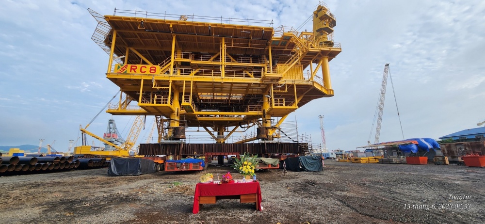 Tác phẩm dự thi "Petrovietnam trong tôi": Bộ ảnh "Thi công lắp đặt Topside RC8 của Xưởng biển - Xí nghiệp Xây lắp Khảo sát & Sữa chữa các công trình dầu khí – VIETSOVPETRO", tác giả Đồng Hoàng Đức (Vietsovpetro)