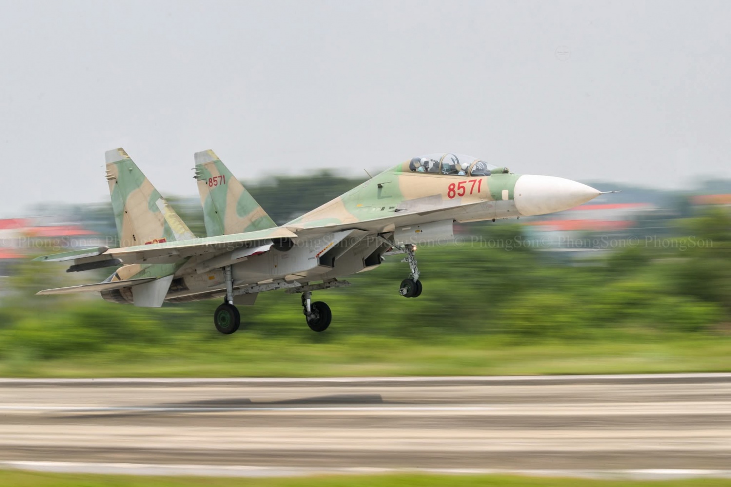 Với đặc thù luôn thay đổi độ cao, tốc độ... đột ngột trong quá trình chiến đấu, huấn luyện nên các yêu cầu kỹ thuật của nhiên liệu đặc chủng JET A1-K sử dụng cho tiêm kích SU30 MK2 là vô cùng khắt khe. Ảnh: Phong Sơn