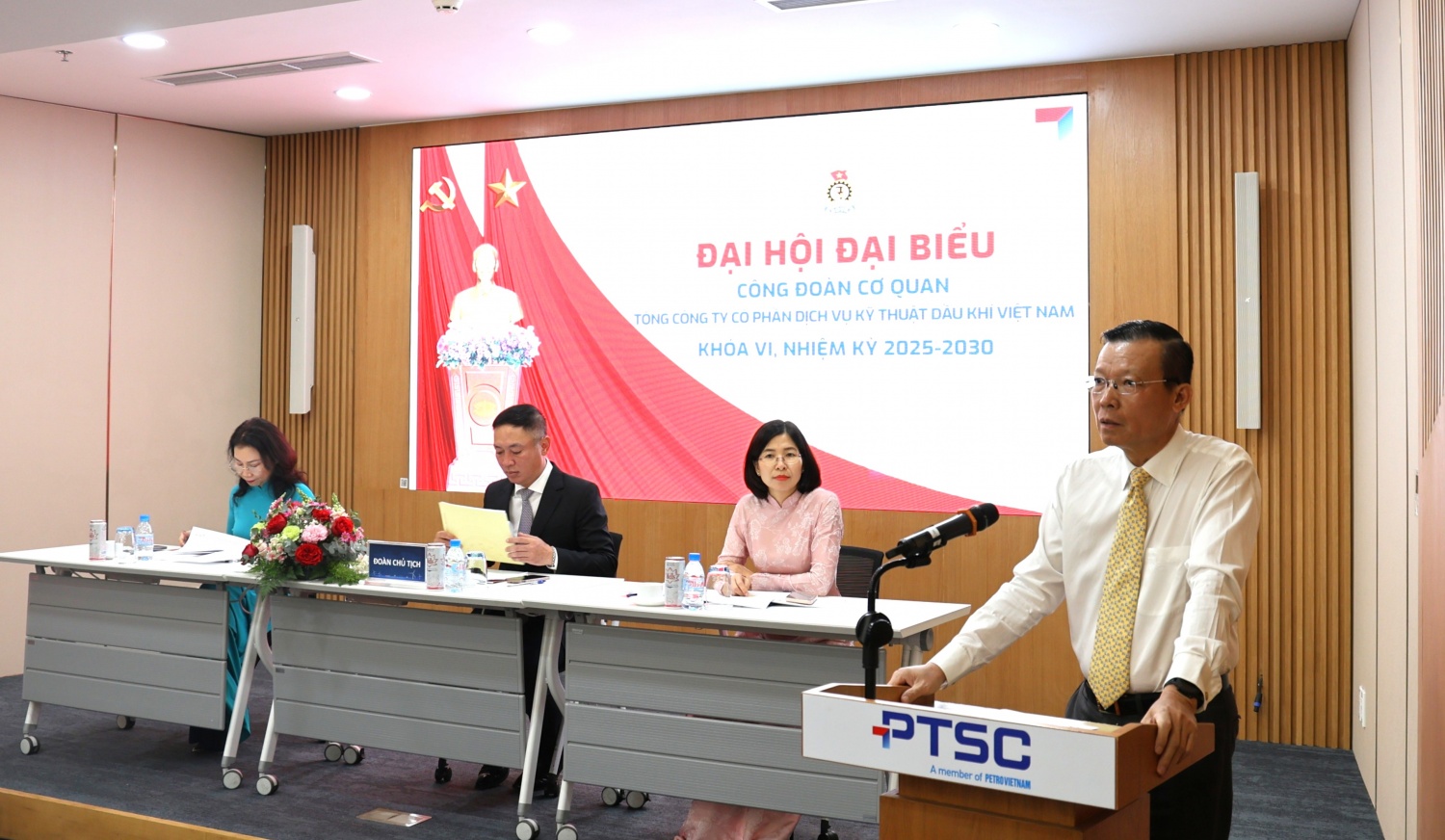 Đại hội cũng đã lắng nghe tham luận với chủ đề “Hoạt động sản xuất kinh doanh trong giai đoạn hiện nay và vai trò không thể thiếu của tổ chức Công đoàn PTSC”. Tham luận khái quát bức tranh hoạt động của PTSC trong giai đoạn chuyển dịch chiến lược 2022-2025, khi Tổng công ty vừa củng cố lĩnh vực dầu khí truyền thống, vừa mở rộng mạnh mẽ sang năng lượng tái tạo và hạt nhân, hướng tới phát triển xanh và bền vững. Trong bối cảnh nhiều thách thức, PTSC đã chủ động chuẩn hóa quy trình, đẩy mạnh đào tạo nhân lực quốc tế, tăng cường chuyển đổi số và phát triển văn hóa doanh nghiệp. Tham luận nhấn mạnh vai trò đồng hành của tổ chức công đoàn trong bảo vệ quyền lợi người lao động, nâng cao năng suất, lan tỏa văn hóa doanh nghiệp và củng cố sức mạnh tập thể - nền tảng quan trọng để PTSC hướng tới mục tiêu tăng trưởng 10-15% trong giai đoạn 2026-2030.