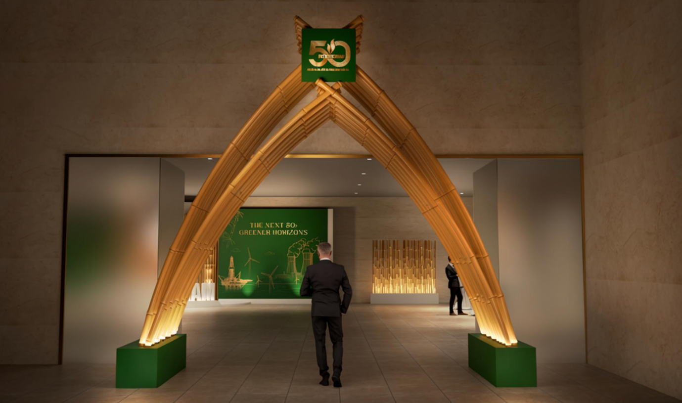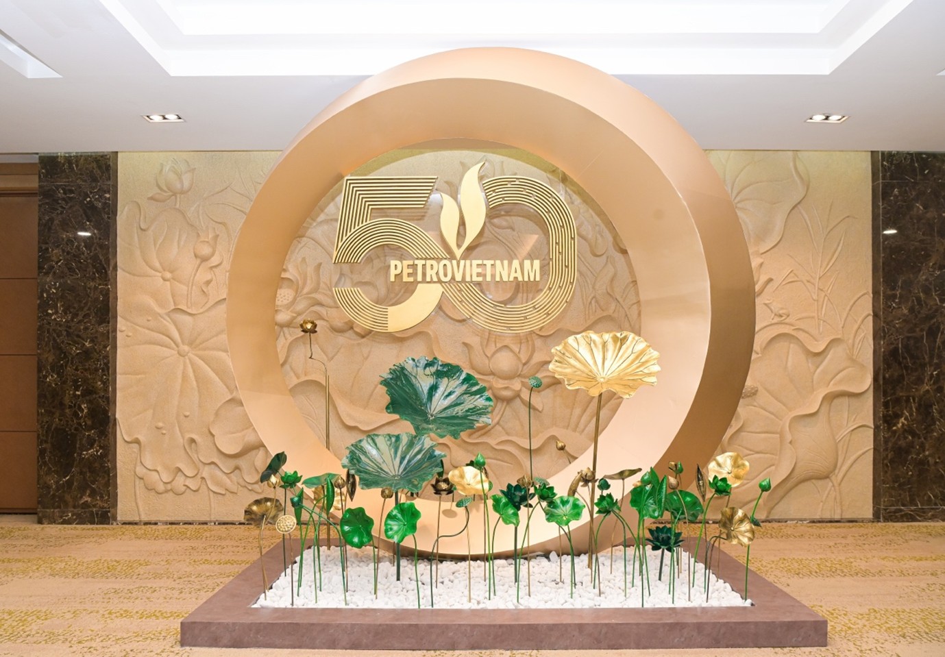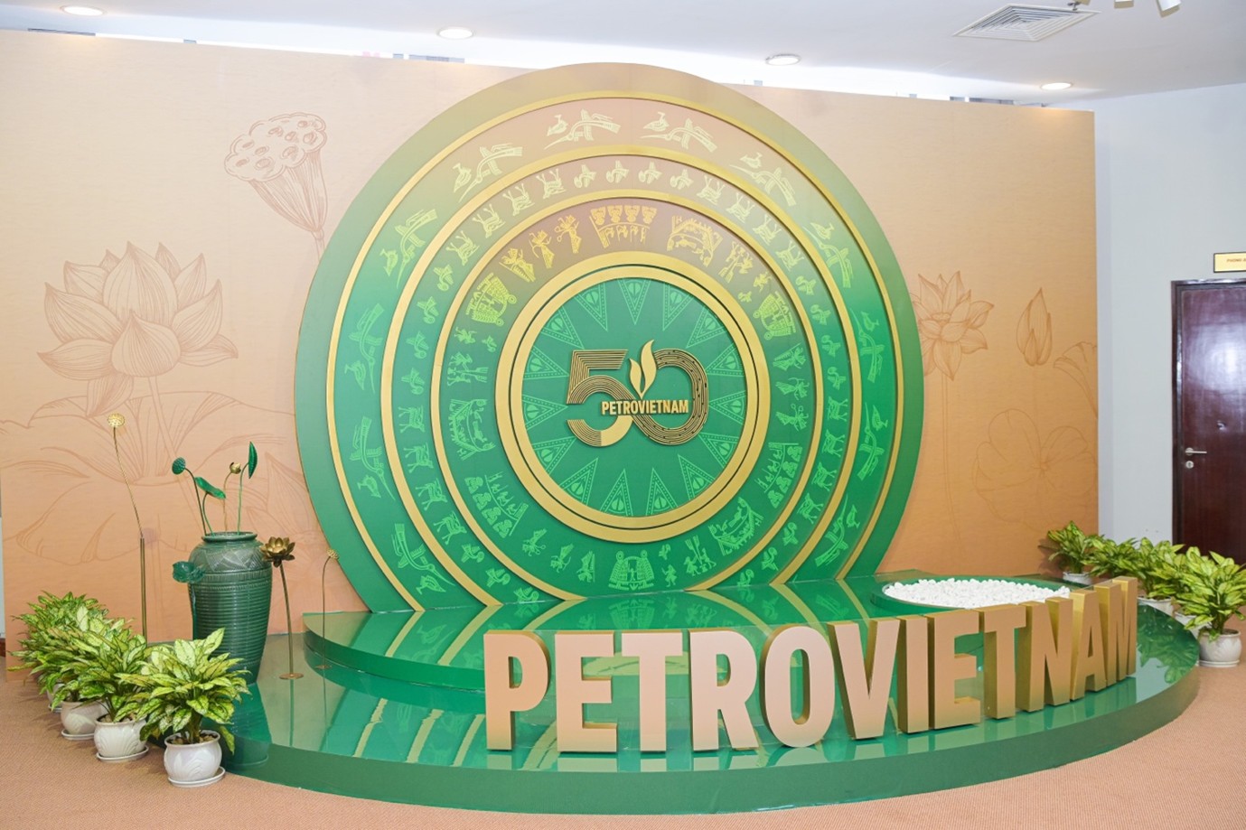 Bộ Logo nổi bật kỷ niệm 50 năm thành lập Petrovietnam tại lối đi tầng 1