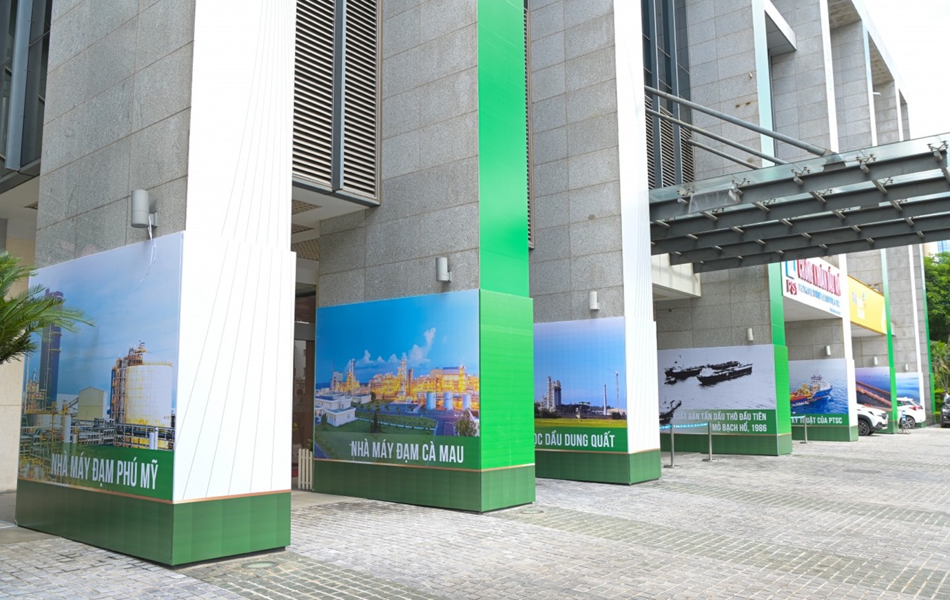 Hình ảnh các công trình của Petrovietnam tại sảnh ngoài đối diện đường Huỳnh Thúc Kháng
